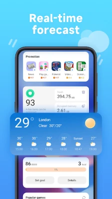 Atsisveikinkite su ilgu naršymu ieškant mėgstamų programų. App vault siūlo išmanius sparčiųjų nuorodų sprendimus, leidžiančius akimirksniu pasiekti dažniausiai naudojamus įrankius. Be to, niekada nepraleisite svarbios informacijos apie orus: akimirksniu patikrinkite dabartines sąlygas ir peržiūrėkite išsamią kelių dienų prognozę, kad visada būtumėte pasiruošę bet kokiems orų pokyčiams.