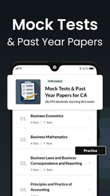 Išsami programos „CA Foundation / CPT Prep Notes & Mock Tests" struktūra apima visą egzaminų programą. Joje nuodugniai nagrinėjami „Paper 1: Principles And Practice Of Accounting" ir „Paper 2: Business Laws And Business Correspondence And Reporting" moduliai. Mokymosi medžiaga suskirstyta į aiškius kursus, skirtus apskaitos principams, verslo matematikai, loginiam mąstymui, statistikai, verslo ir komercinėms žinioms bei verslo teisei, specialiai pritaikytiems CA Foundation egzaminui. Čia rasite viską nuo mikroekonomikos įvado ir pasiūlos-paklausos teorijos iki detalios buhalterinės apskaitos informacijos, tokios kaip žurnaliniai įrašai ir banko suderinimo ataskaitos. Verslo studijų srityje nagrinėjama verslo prigimtis, organizavimo formos ir etika, o apskaitos skyriuje – akcijų kapitalo ir obligacijų apskaita bei finansinių ataskaitų analizė. Matematikos skyrius padės įvaldyti lygtis, palūkanas, kombinatoriką, skaičiavimus ir esminius statistikos bei tikimybių teorijos principus. Kilus klausimams ar pasiūlymams, galite susisiekti su palaikymo komanda el. paštu