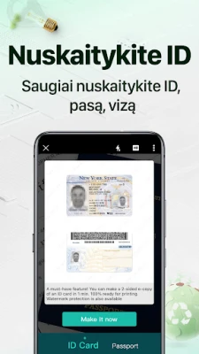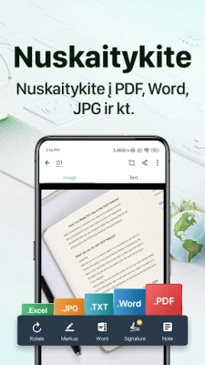 **CamScanner** leidžia akimirksniu skenuoti įvairius dokumentus – kvitus, užrašus, vizitines korteles, sąskaitas ar sertifikatus – tiesiog naudojant telefono kamerą. Pažangus išmanus apkarpymas ir automatinis patobulinimas garantuoja nepriekaištingą skenavimo kokybę, užtikrinant ryškų tekstą ir sodrias spalvas skaitmeniniuose failuose. Su integruota OCR (optinio simbolių atpažinimo) funkcija, **CamScanner** ne tik skenuoja, bet ir ištraukia tekstą iš vaizdų ar PDF, leidžiantį lengvai ieškoti, redaguoti ir dalintis svarbia informacija.