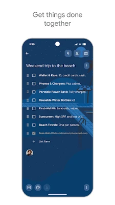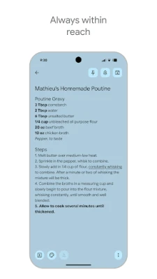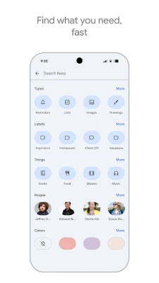 Tvarkykite savo užrašus be pastangų, naudodami intuityvią spalvų kodavimo ir etikečių sistemą, kuri leidžia greitai rasti reikiamą informaciją. Pamirškite ilgas paieškas – su „Google Keep" visada žinosite, kur rasti savo mintis, o paprasta paieška atliks likusį darbą. Be to, dalinkitės savo idėjomis ir planais su draugais ar šeima: bendradarbiaukite realiuoju laiku, redaguodami bendrus užrašus, kad staigmenos vakarėlio organizavimas ar kitų projektų valdymas taptų itin sklandus ir efektyvus. Pritvirtinkite svarbiausius užrašus prie pagrindinio ekrano ar „Wear OS" įrenginio, kad jie visada būtų po ranka ir pasiekiami akimirksniu.