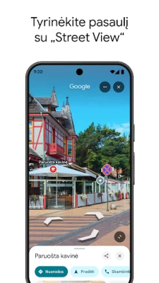 Planuokite savo nuotykius su neprilygstamu tikslumu ir ramybe. Pasinaudokite „Street View" funkcija, kad vizualiai apžiūrėtumėte savo atvykimo vietą, pavyzdžiui, stovėjimo aikštelę ar įėjimus, dar prieš išvykdami. Su „Immersive View" patirkite naują lankytinų objektų, parkų ir maršrutų peržiūros būdą, įskaitant ir orų prognozes, padėsiančias viskam pasiruošti iš anksto. Kurkite asmeninius mėgstamų vietų sąrašus, dalinkitės jais su draugais ir niekada nepraraskite svarbių vietų. Pamirškite ryšio problemas – neprisijungus pasiekiami žemėlapiai garantuoja, kad nepasiklysite net atokioje vietovėje. Nuo maisto pristatymo ir staliukų rezervavimo iki viešbučių užsakymų – visa tai galite atlikti tiesiai iš programėlės, papildomai peržiūrėdami kitų naudotojų atsiliepimus ir nuotraukas, kad priimtumėte geriausius sprendimus.